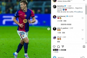奥尔莫社媒晒出自己的比赛照片,配文:“一起朝着目标前进,我们继续并肩作战。很高兴重返赛场。”
